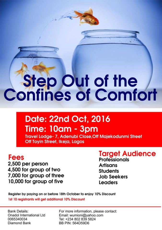 For further details, click on https://adewumioni.wordpress.com/2016/09/24/step-out-of-the-confines-of-comfort/?preview=true