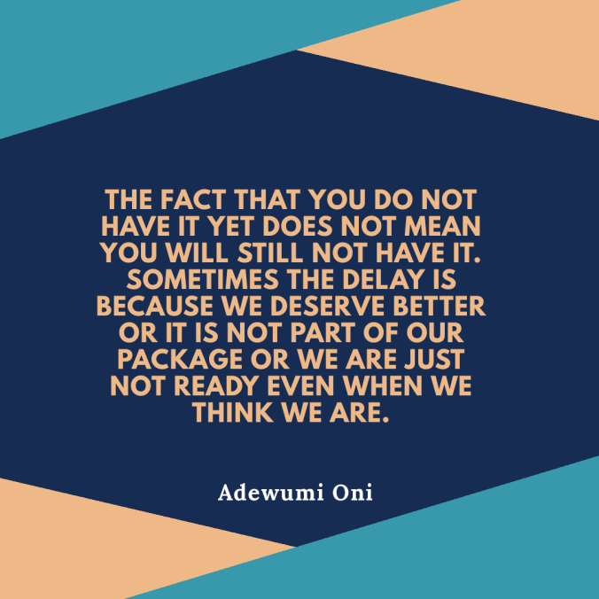 What is meant for you will be yours, but not until these three elements coincide: time, maturity and purpose!