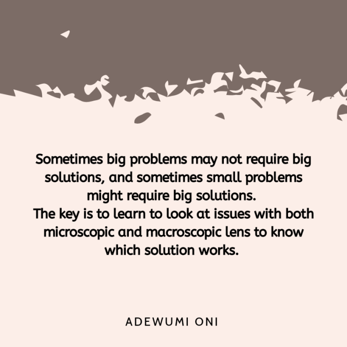 Do not judge a problem by its size, that can sometimes be misleading, look at issues from far and near before proferring solutions!