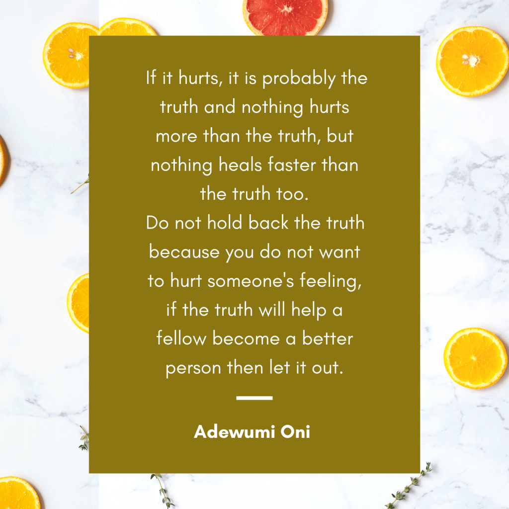 The truth hurts but heals and liberate also, so say it even if it hurts.