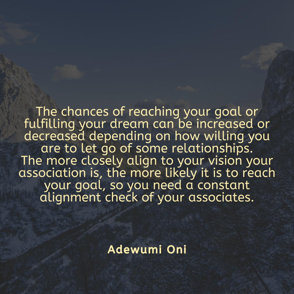 Not everyone can walk with you if you want to fulfil your vision, you have got to be intentional about who walks with you or who you walk with.