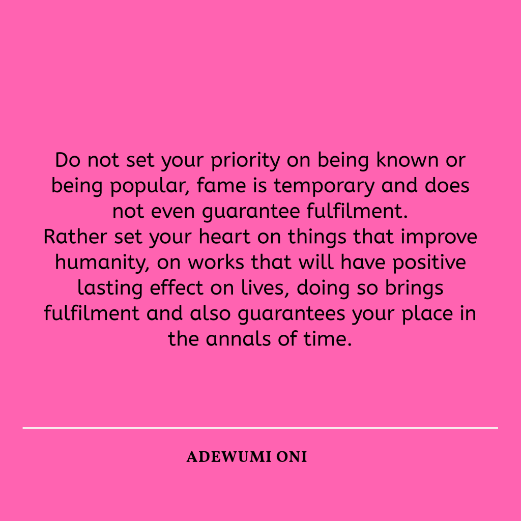 Do not aim for fame, aim for impact, because fame will fade but impact lasts.