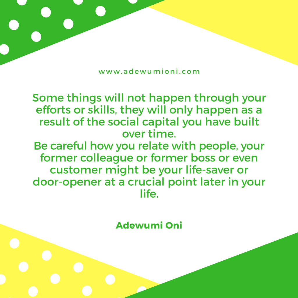 There is a limit to where skills and prowess alone can take you, at some point you will need critical human intervention, so build your social capital.
