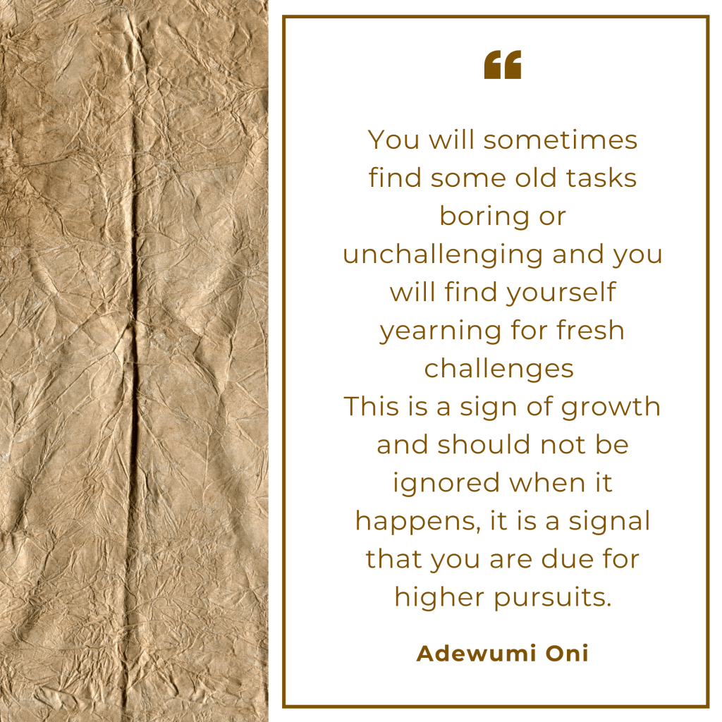 Growth follows when you take on an unfamiliar task until it becomes familiar, and you leave the familiar again for the unfamiliar.
