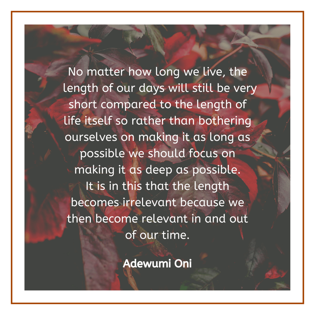 Depth is more important than length, make your life a meaningful and impactful one.