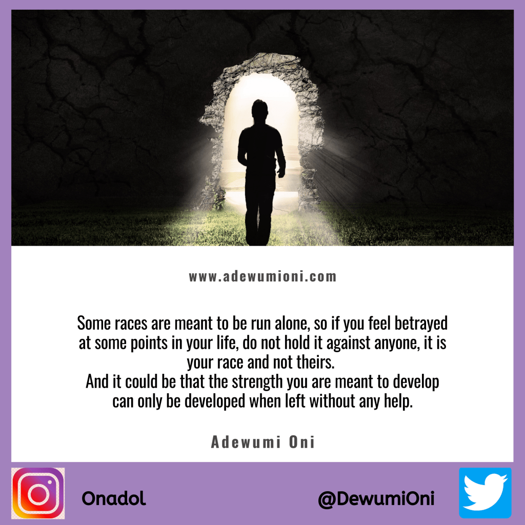 There are tunnels you have to pass through alone, don’t see being deserted as betrayal, it is for your good.”