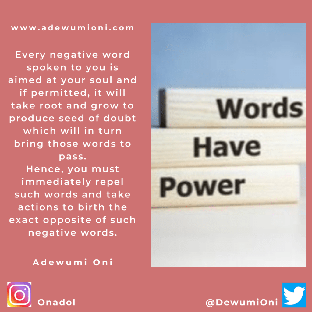 Do not allow any negative words spoken at you get to your soul, because it has power to fulfill itself.