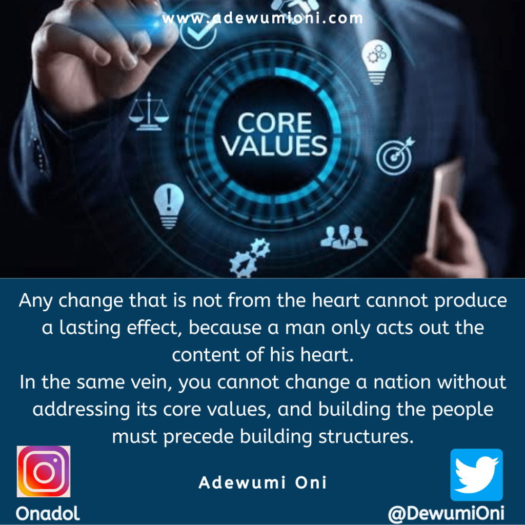 You cannot change a people or nation whose heart has not been touched, it will amount to an exercise in futility.