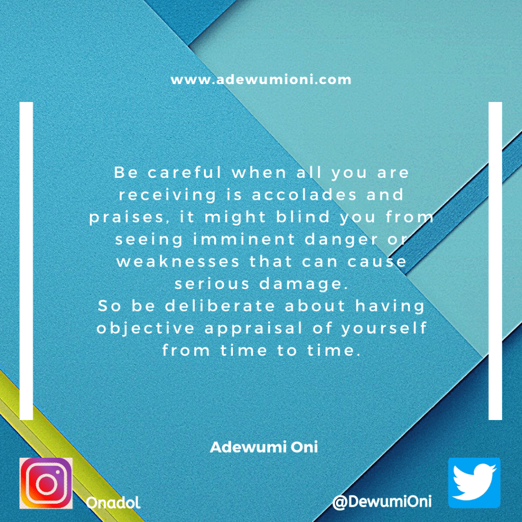 You need to be more careful when all you keep receiving is praises, danger might just be lying around.
