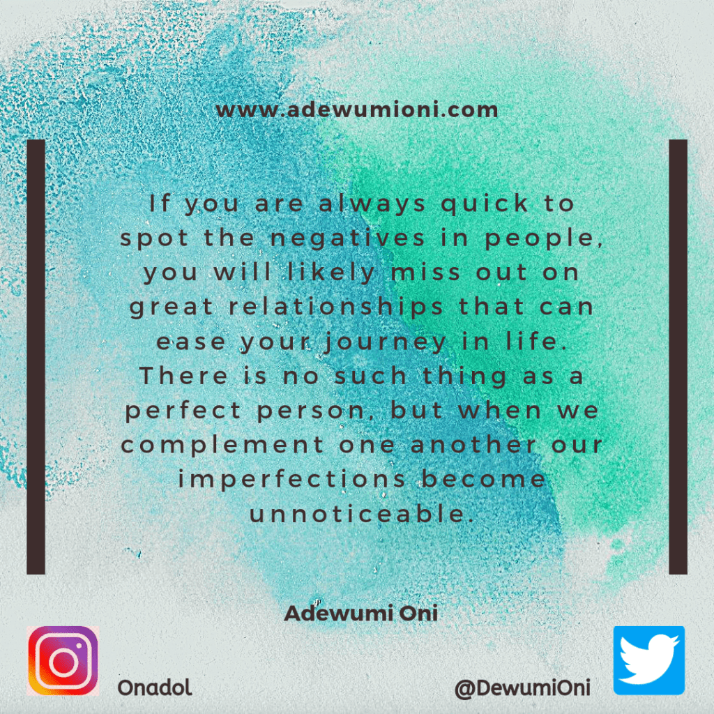 Train your mind to look out for positives in others, you will be surprised that you have always had what you want around you.