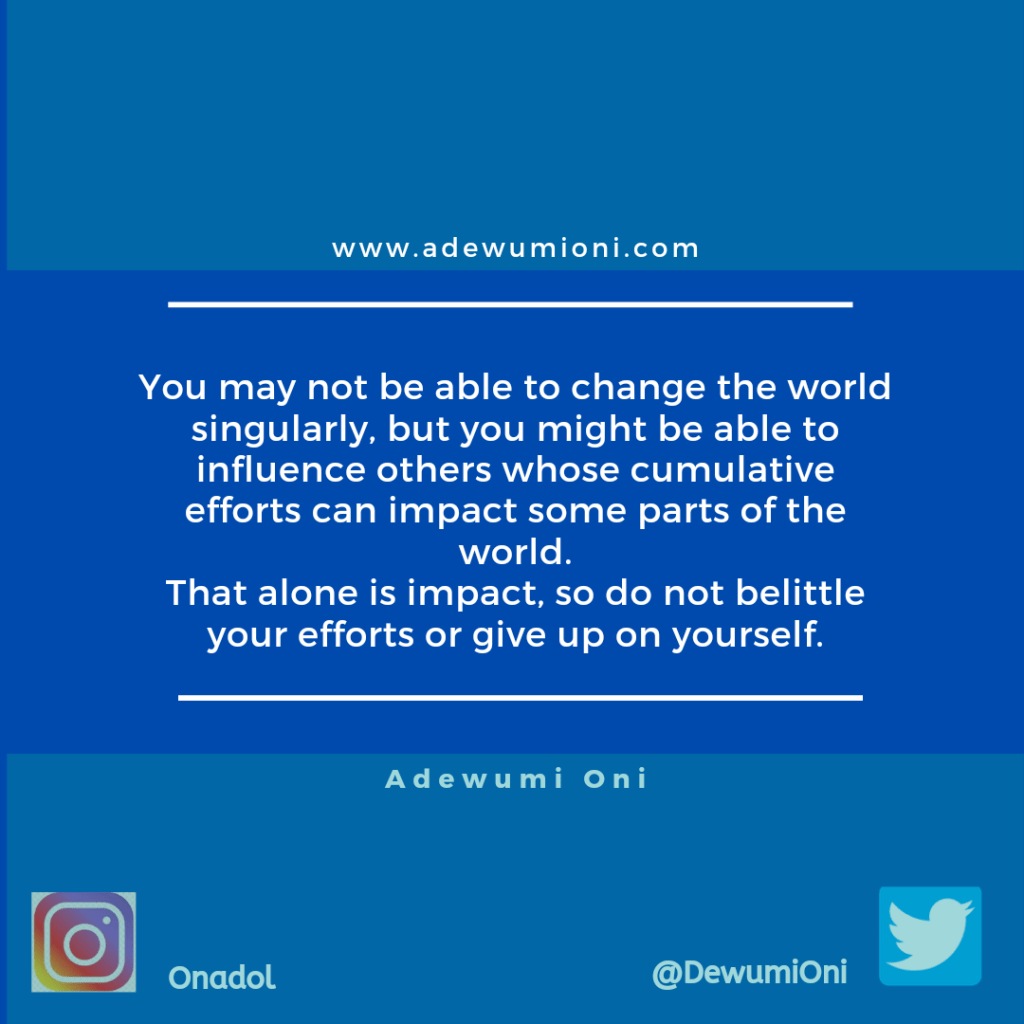 Do not think your efforts do not count, it may not change the world but it can change some people who have huge influence on others.