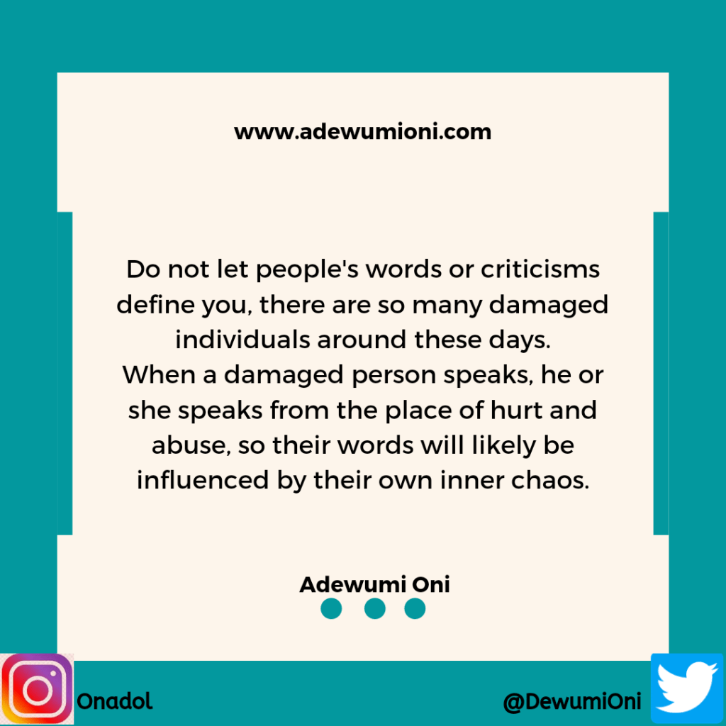 Hurt people speak from the abundance of their hearts, so do not let their words define you.