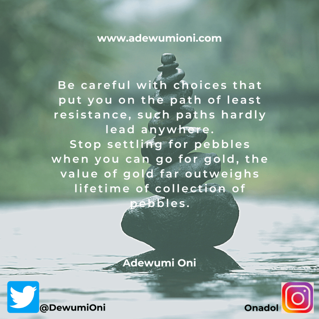 Stop choosing the path of least resistance, because treasures are hardly found on such paths.