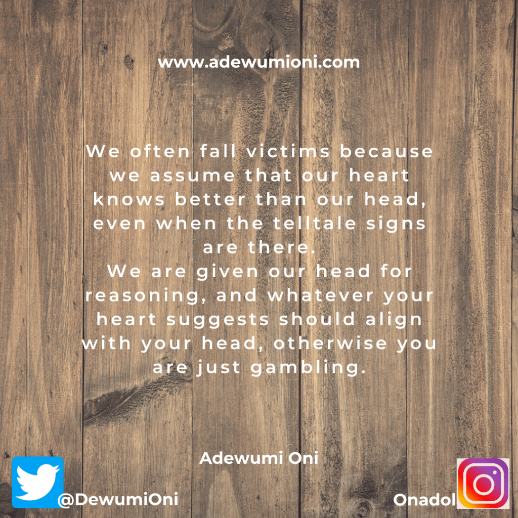 ‘Head over heart’ is an important rule that will save you a lot of troubles, always keep that in mind.