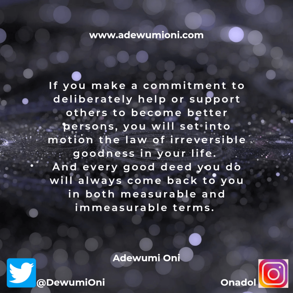 Every good you do will come back to you in both measurable and immeasurable ways.