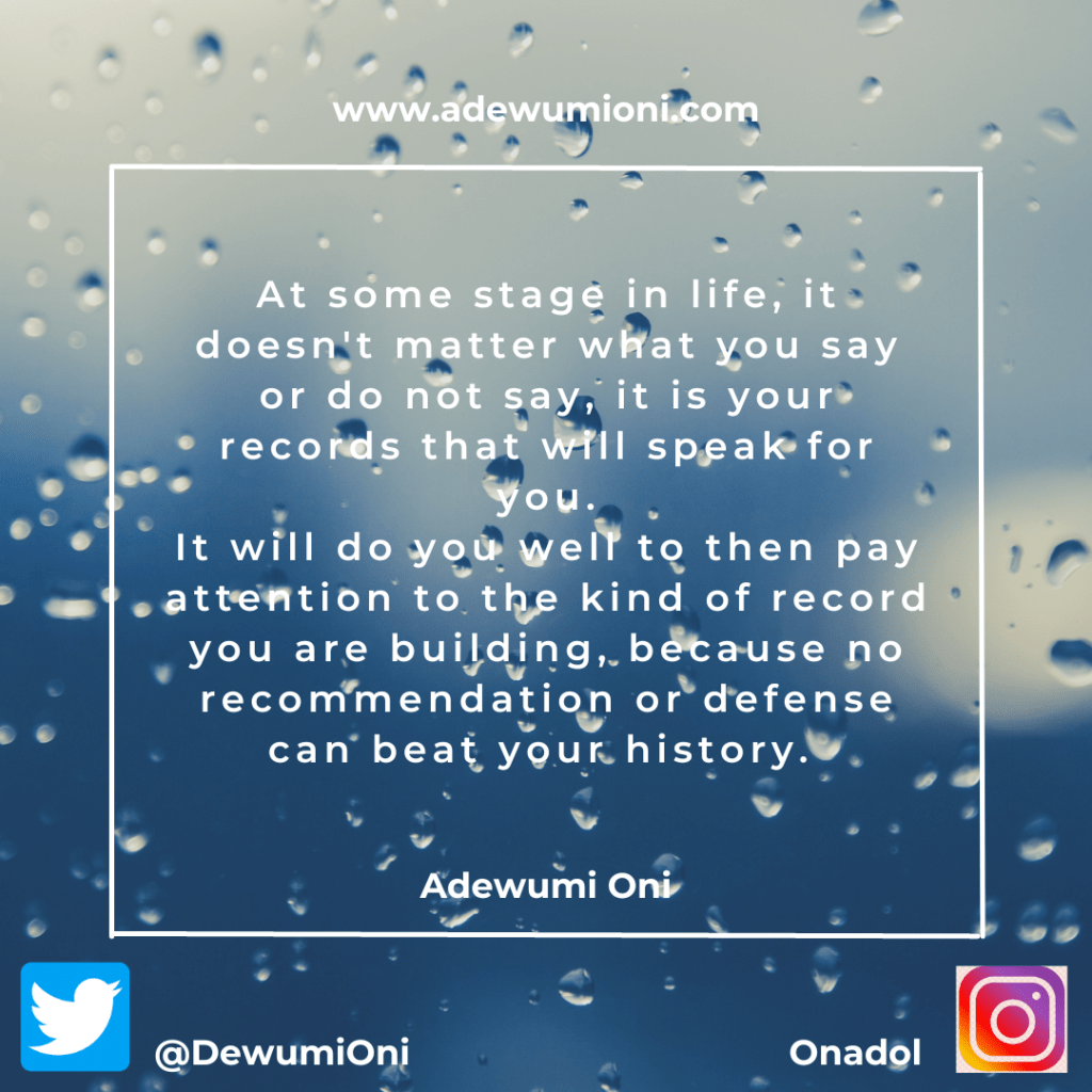 Your records speak louder than your words or actions, so be careful with the history you are building.