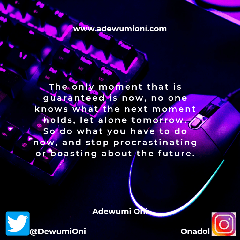 You only have control over the present moment because tomorrow is not even guaranteed, so maximise your now.