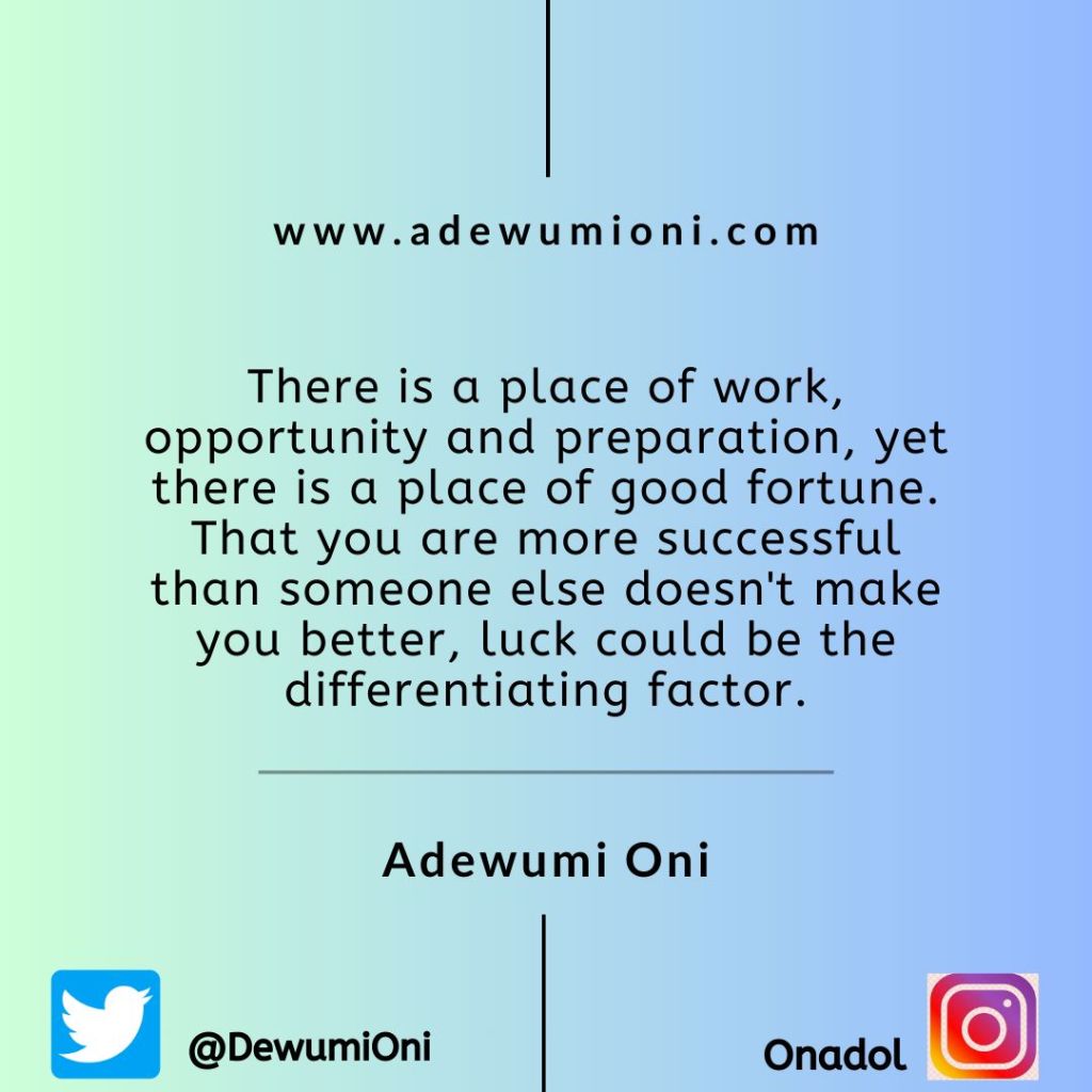 Be humble when relating with others who aren’t as successful as you are, never assume they are not making effort.
