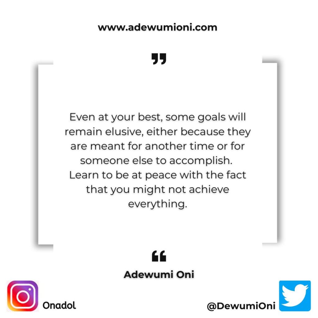 It’s essential that we do all we can, and if certain goals remain unmet, it shouldn’t be for lack of effort. So, don’t continue blaming yourself if, after giving your best, some things still don’t come to fruition. Find peace within yourself when you’ve done all you can, and it still didn’t happen.