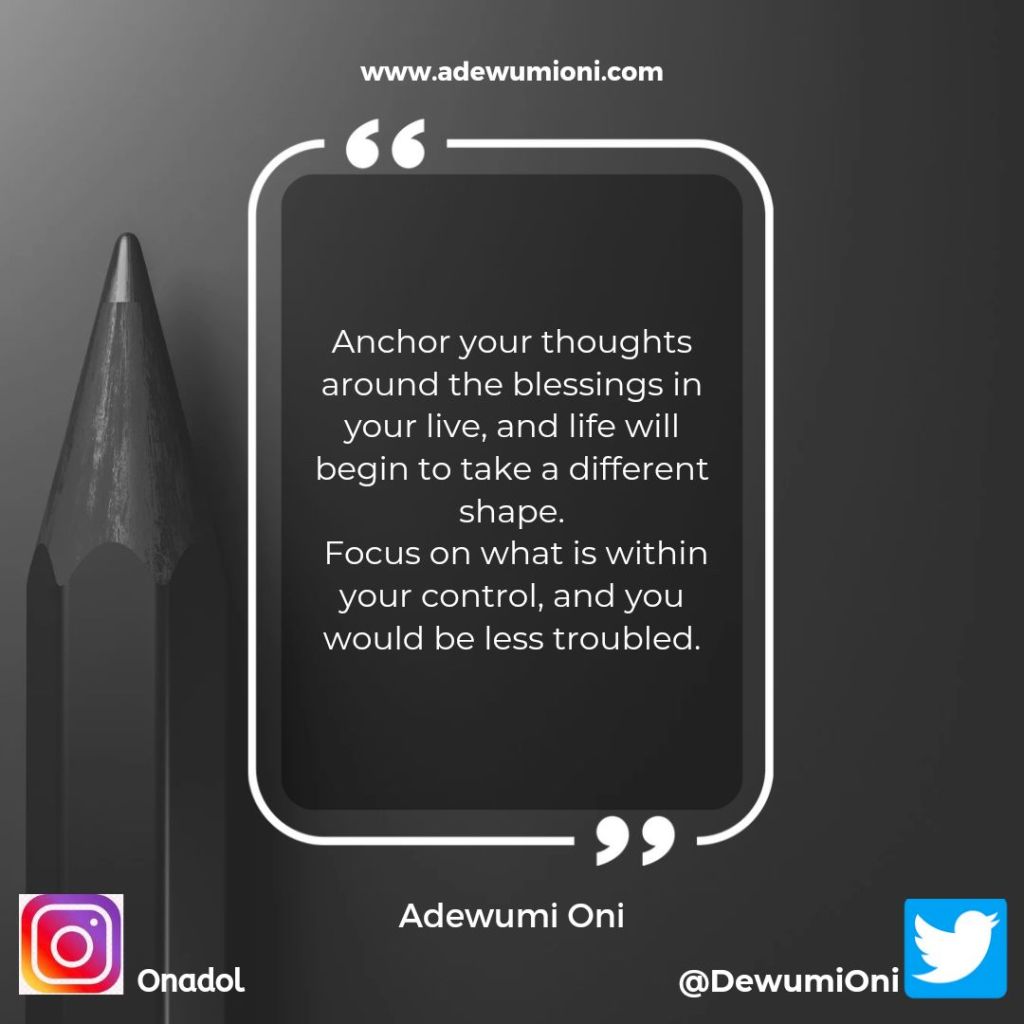 Secondly, I focus more on what I have and what I have been blessed with. Yes, I have needs, but I don’t agitate about them anymore, I simply plan as much as I can within my power. At the end of the day, nothing matters more than your life.
